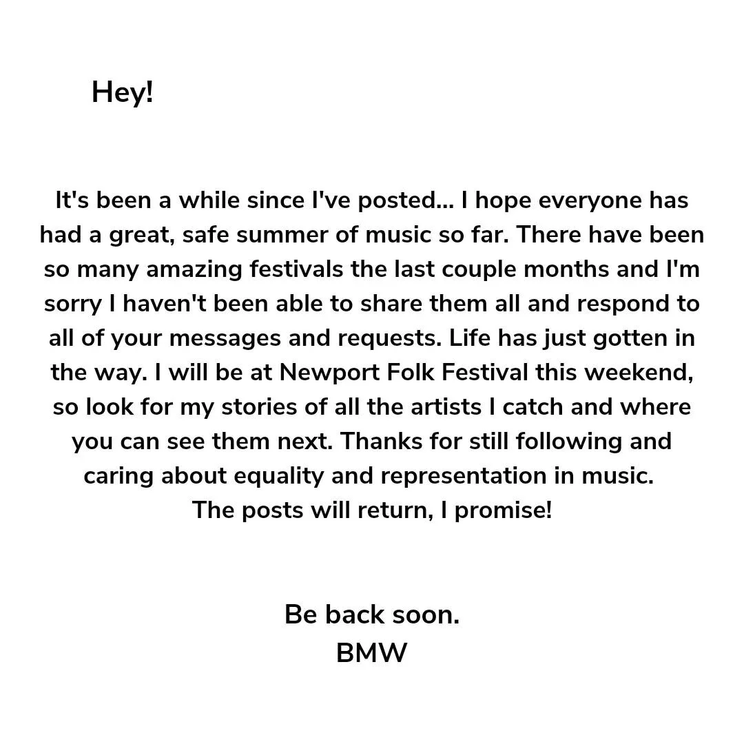Percentages posted on twitter and instagram are based on the total number of musical acts booked for the festival and the total number of musical acts who meet the above criteria. Non-musical acts such as comedians or visual artists are not considered. Acts with no set roster such as Grand Ole Opry at Bonnaroo or Songs For Kids at Shaky Knees are not considered.
