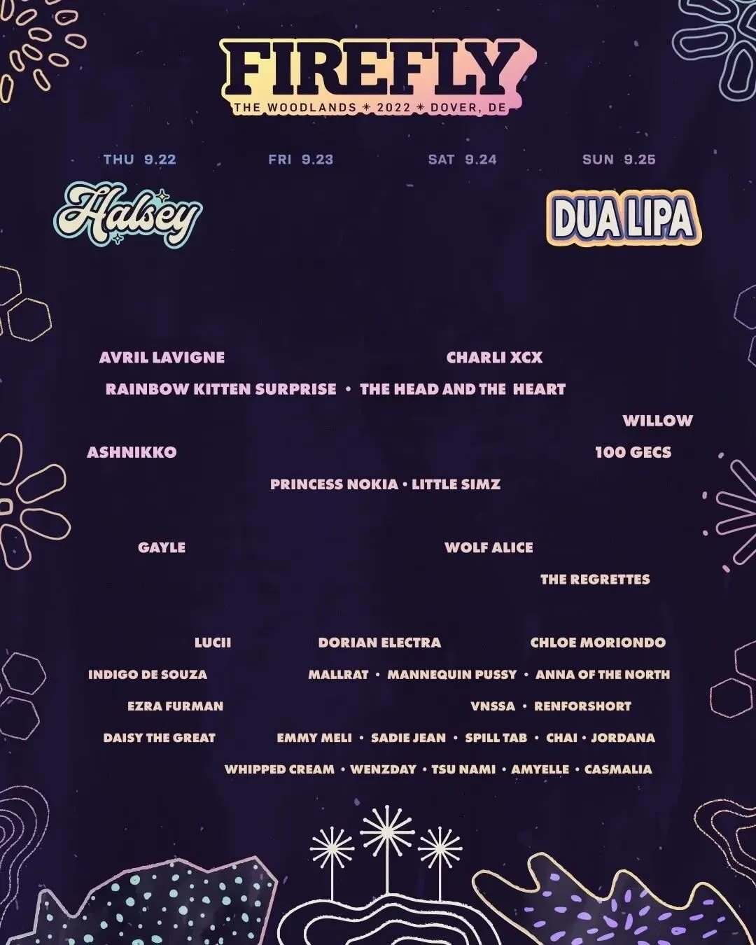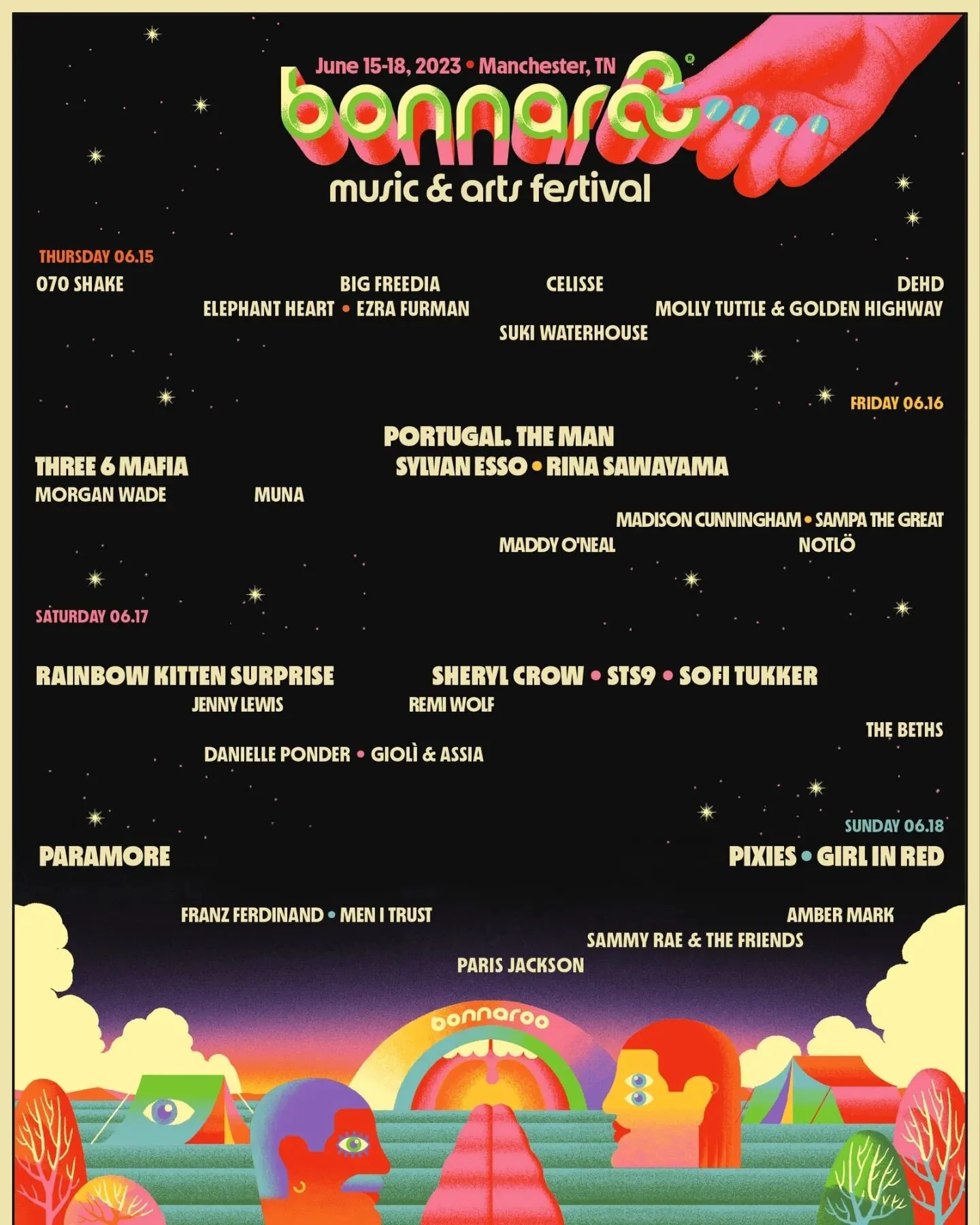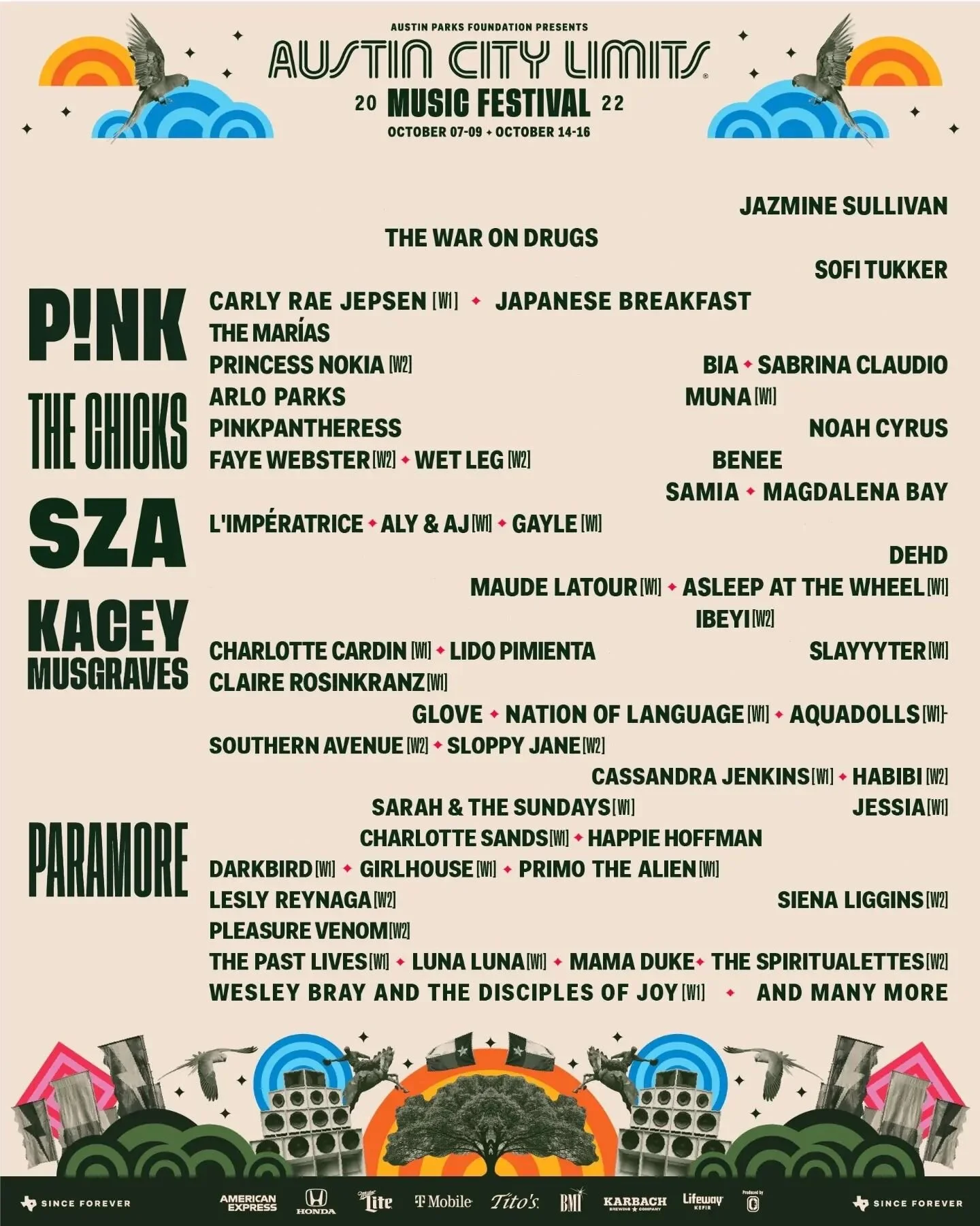 Any band, group, or solo artist who is or features at least one woman or non-binary musician as a permanent member will remain on the poster. Official social media pages, press photos, and interviews are used to determine who is and is not an official member of a group.